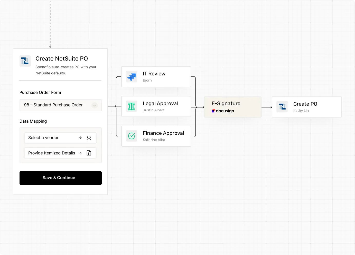Integrate Spendflo across your stack with robust native integrations and enterprise-grade APIs, enabling frictionless data flow between your procurement, finance, and e-signature systems.