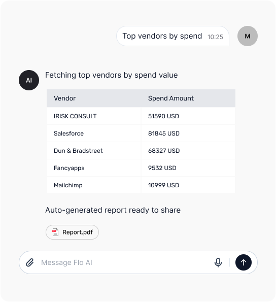 Your AI co-pilot for vendor insights, benchmarks, and optimization.