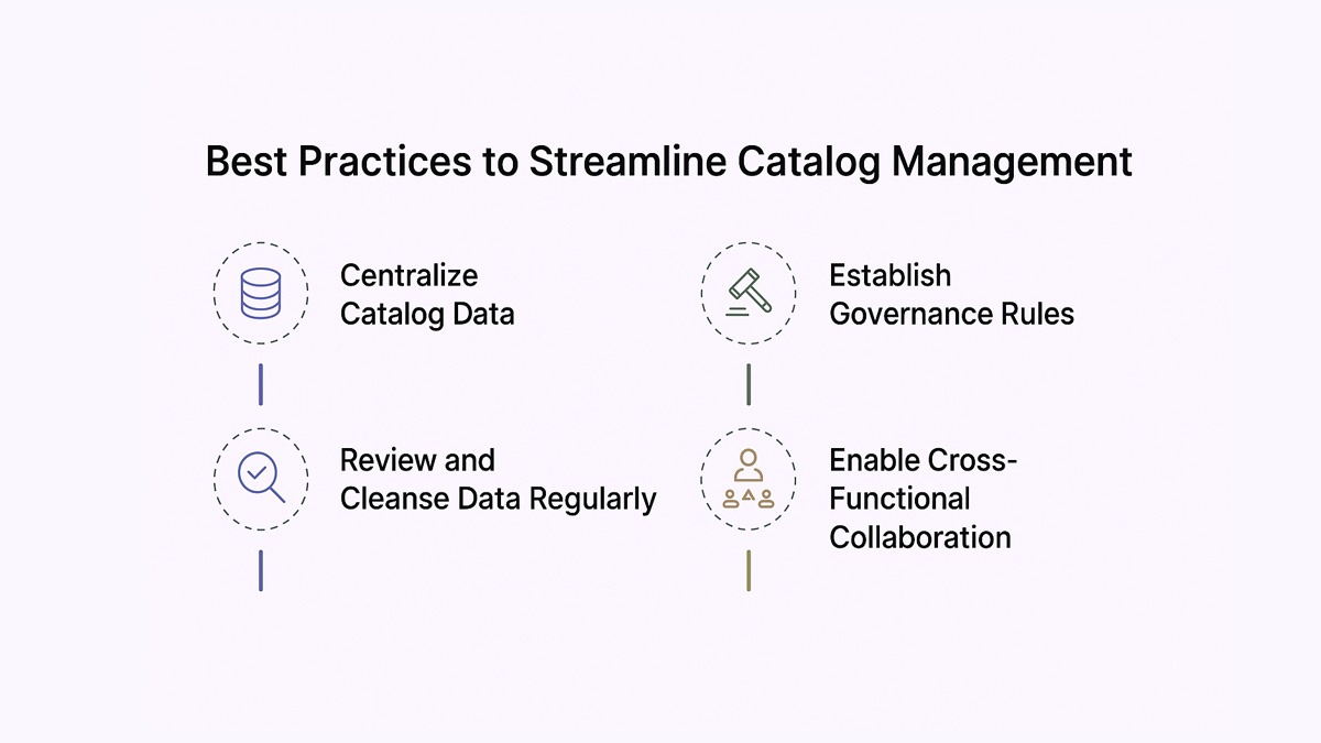 Getting catalog management right isn’t just about having a neat product list - it’s about creating a system that scales with your business, stays accurate, and works in harmony with your procurement goals. Here are some proven best practices to help you streamline the process.