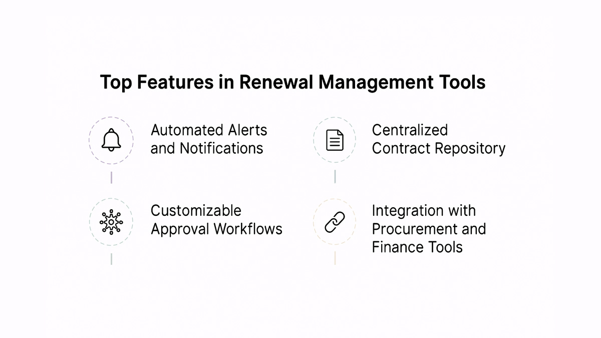 Focus on automated alerts, centralized contract storage, customizable workflows, and integrations with finance or procurement tools. If cost optimization is a priority, look for tools with vendor negotiation support and analytics.
