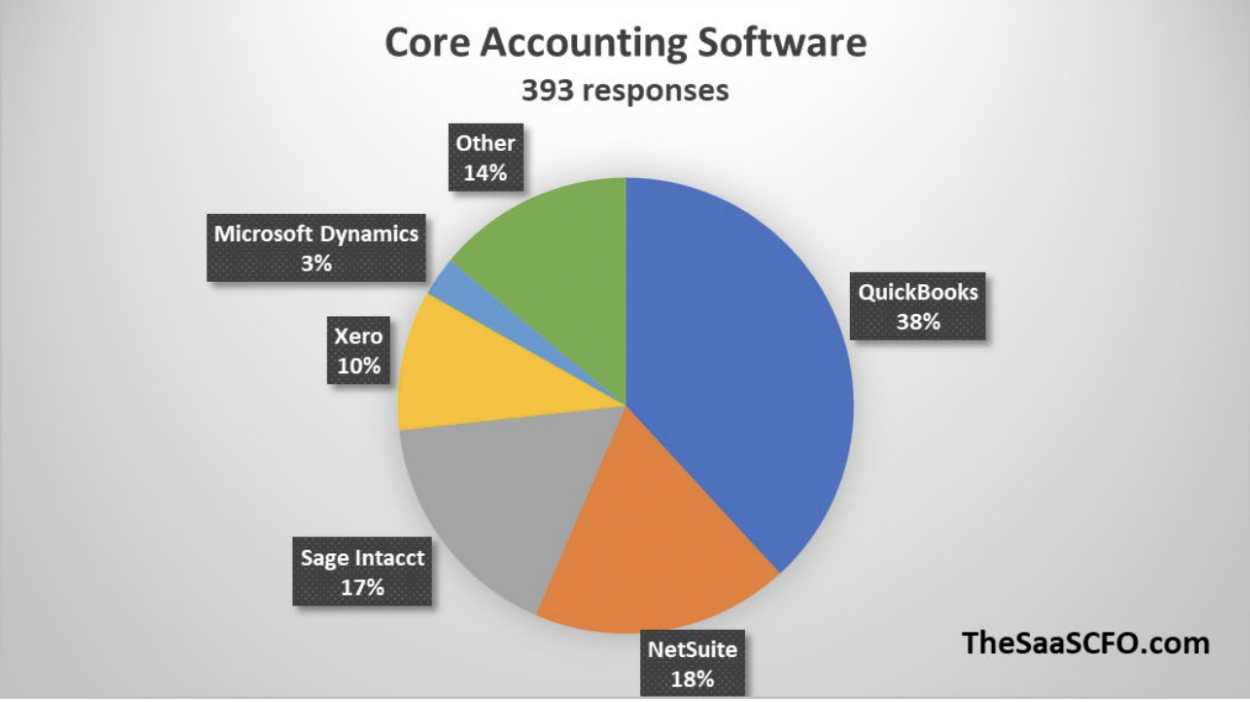 Sage and Netsuite are chipping into Quickbooks’ market share and Xero is trailing. We also noticed that Quickbooks is prevalent in the US and Xero in other countries.