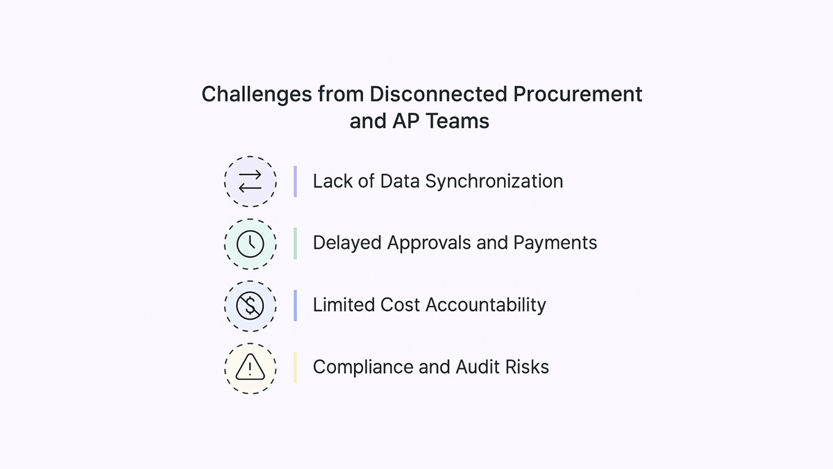 It usually comes down to legacy systems and differing priorities. Procurement focuses on sourcing and vendor management, while AP is concerned with payments and compliance. Without a shared system or workflow, coordination becomes reactive and fragmented.
