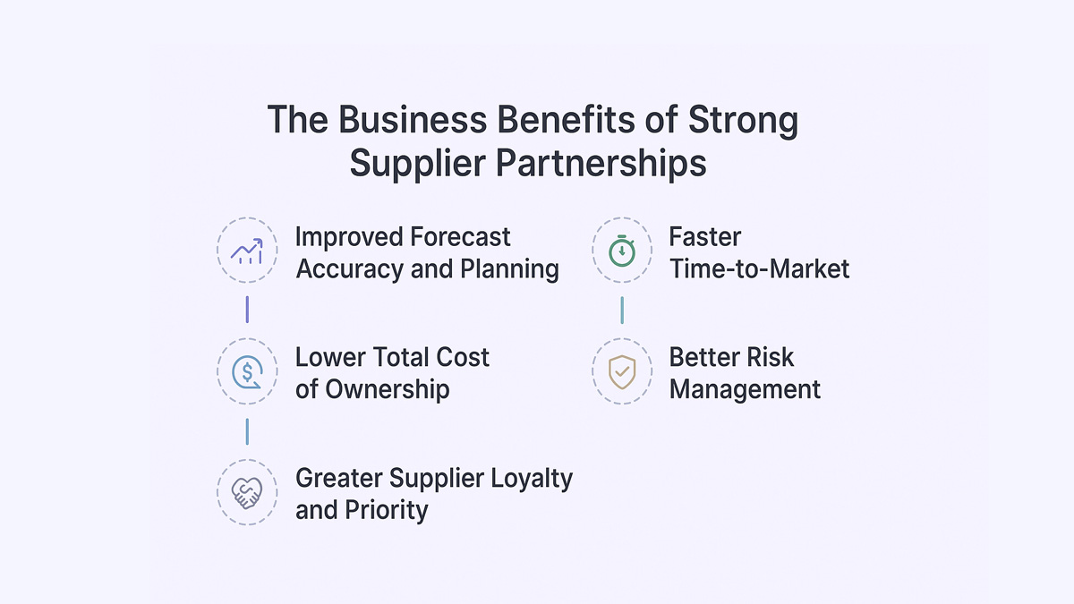 Long-term supplier partnerships bring more to the table than just consistency. They open doors to strategic gains that ripple across every corner of the business. Here’s how companies benefit from moving beyond transactional relationships: