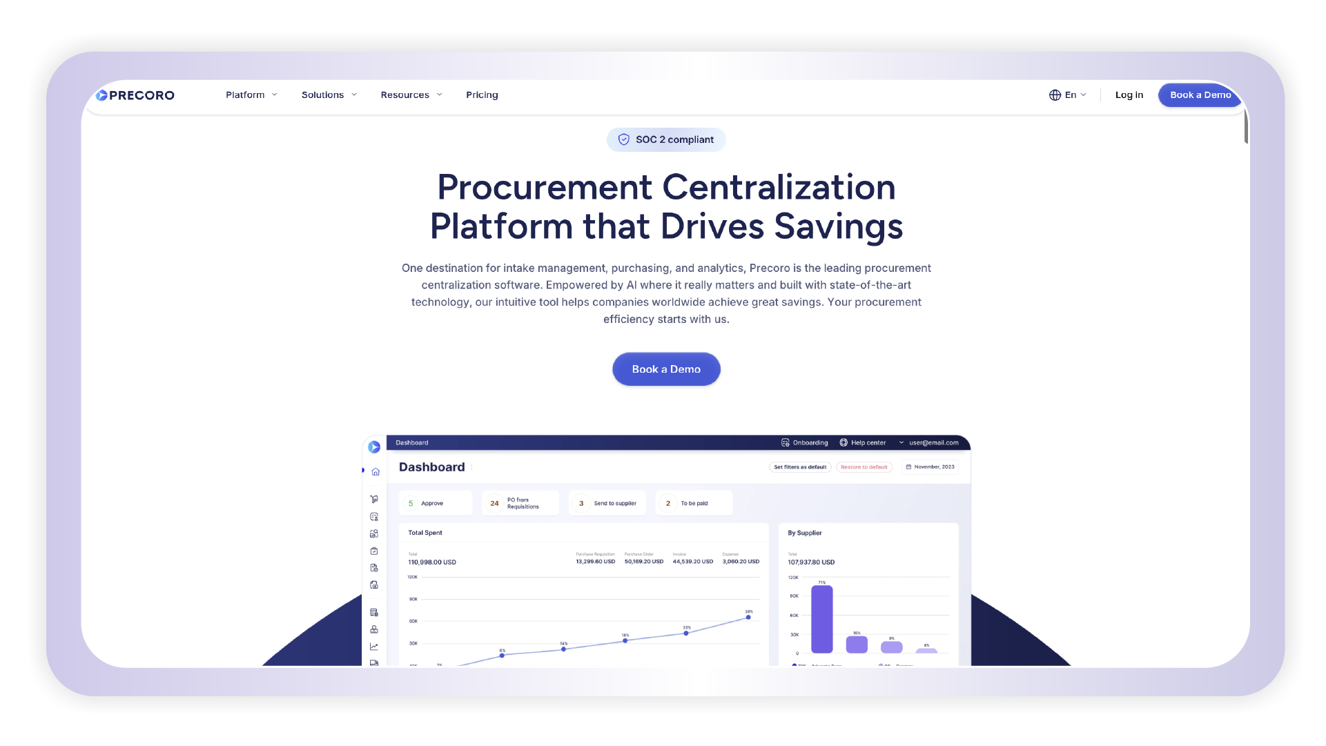 Precoro is a cloud-based procurement and spend management solution built for small and mid-sized businesses. It helps organizations automate purchase orders, manage approvals, and gain visibility into departmental budgets. Known for its simplicity and affordability, Precoro streamlines essential procurement functions without the complexity of enterprise-level systems.