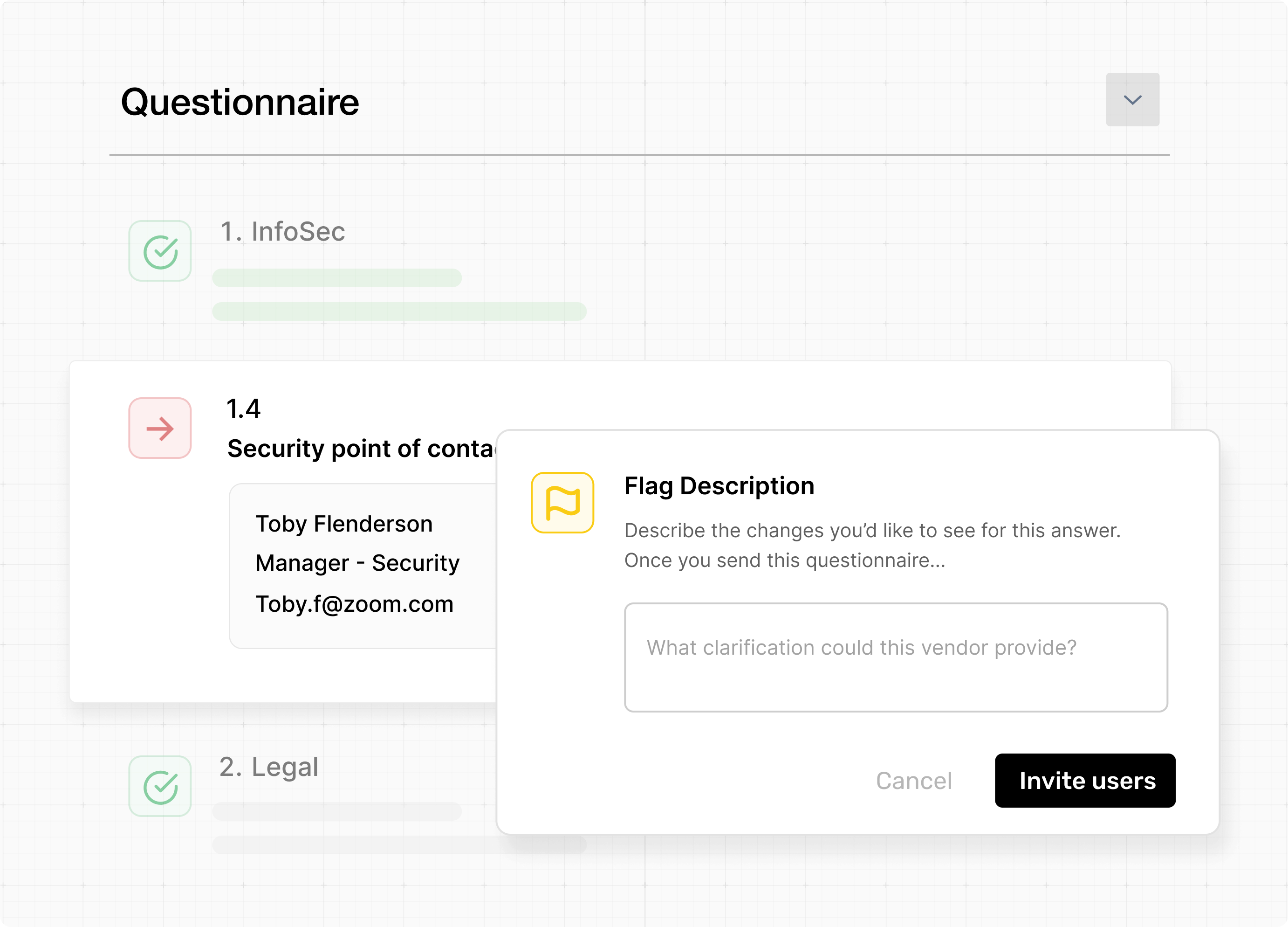Flag and Resolve Security Concerns – Flag responses that don't meet your security standards and get quick resolutions from vendors. Escalate unsatisfactory responses to internal stakeholders and track remediation efforts until security gaps are closed.