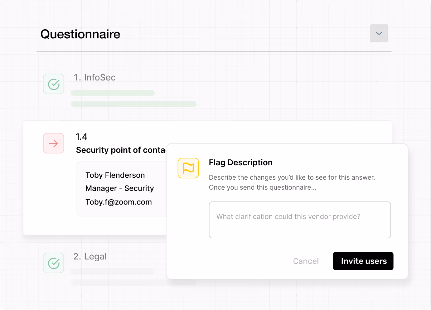 Unsatisfactory responses and potential risks are flagged automatically. Escalations route to the right reviewers, and vendor clarifications stay organized for faster resolution.