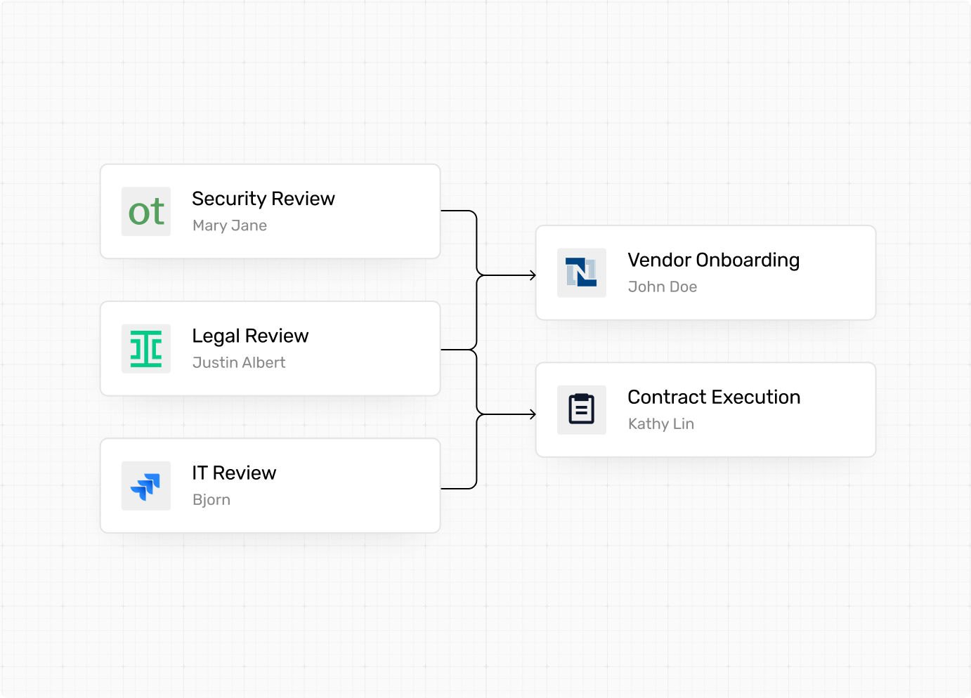 AI triages every request, validates against policies, and routes to the right approvers. Automated security checks, budget validations, and vendor verifications—no manual gatekeeping.