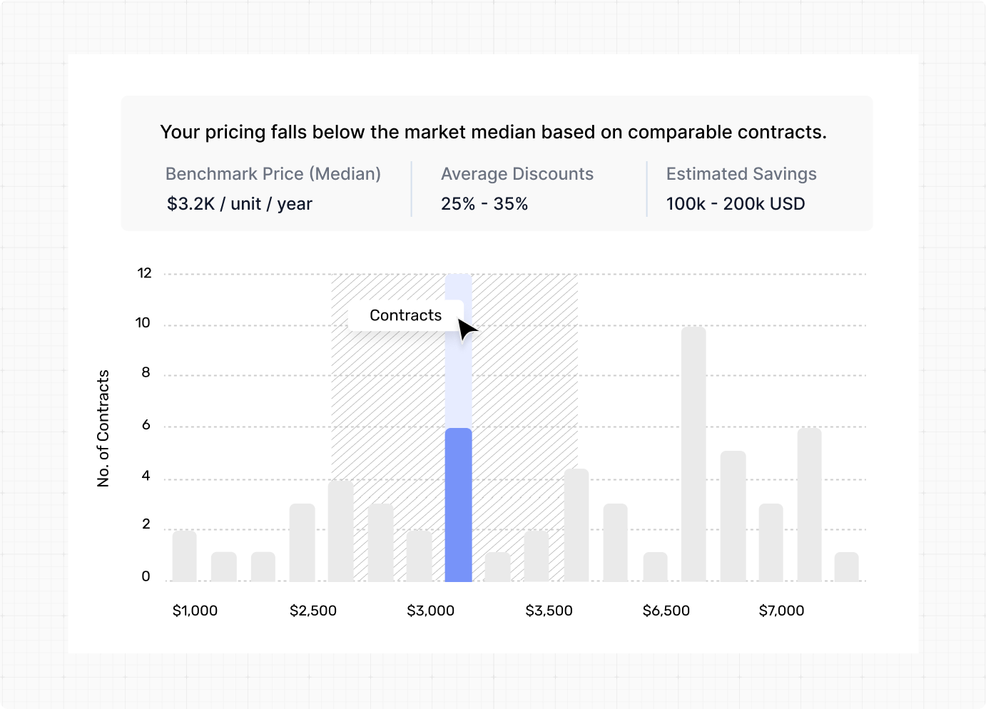 Access benchmark reports with pricing data from thousands of software contracts. Compare costs by company size, industry, and region to inform your negotiations and buying decisions.